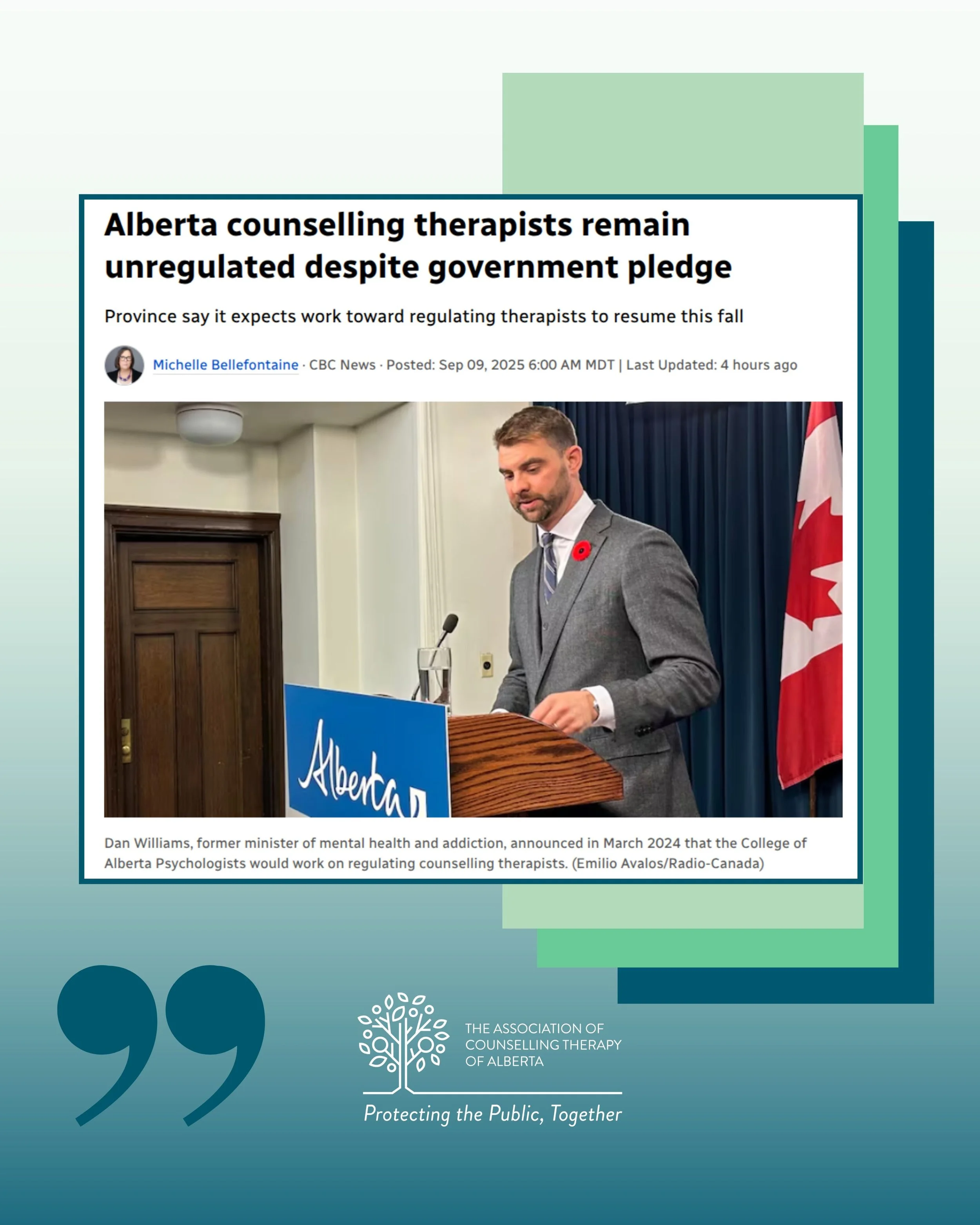 “With the increased openness to talk about mental illness and a decrease in the stigma surrounding seeking help, more Albertans are using the services of therapists and counsellors. We need to ensure that they are getting help from regulated professionals. We hope the Government will listen to its citizens”.